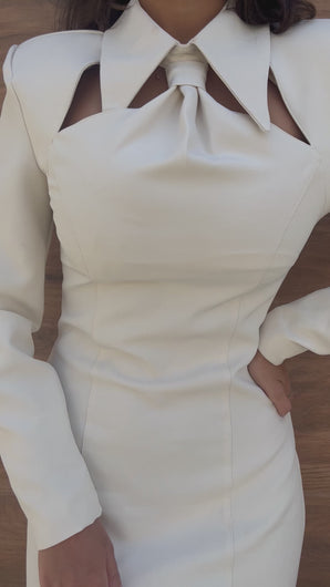 The classic little beige dress, a staple in every wardrobe. We added a little twist to elevate it