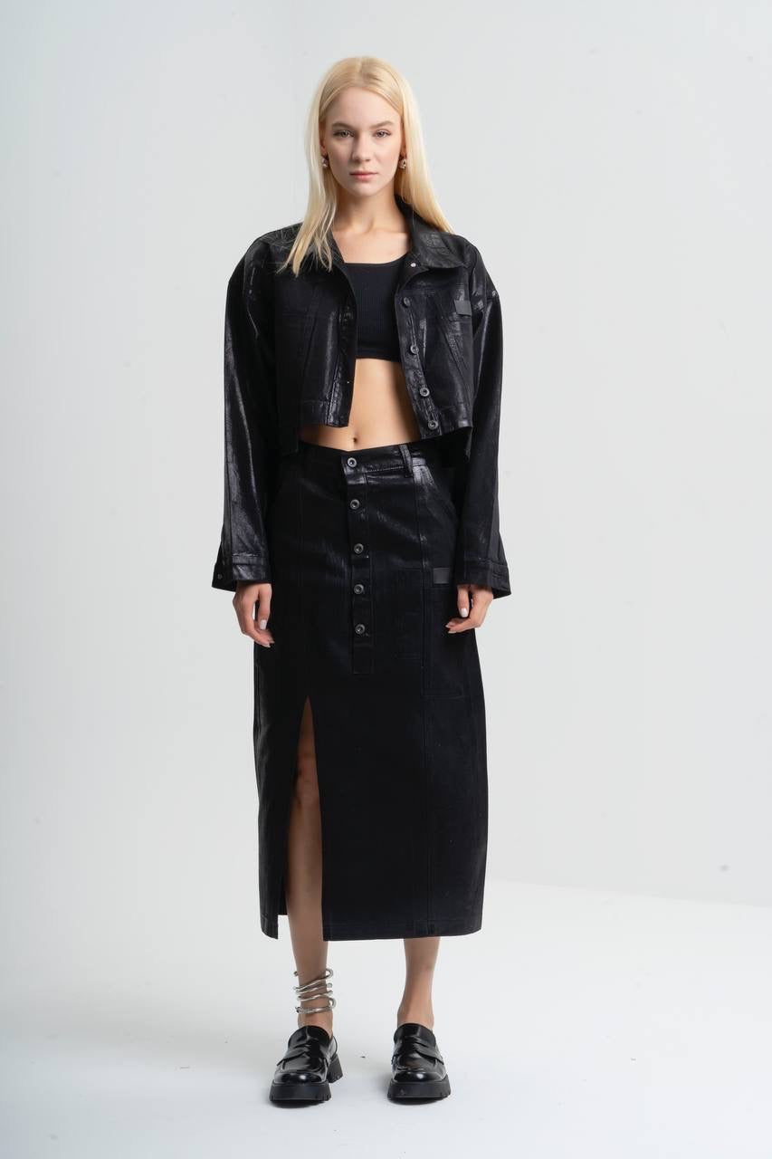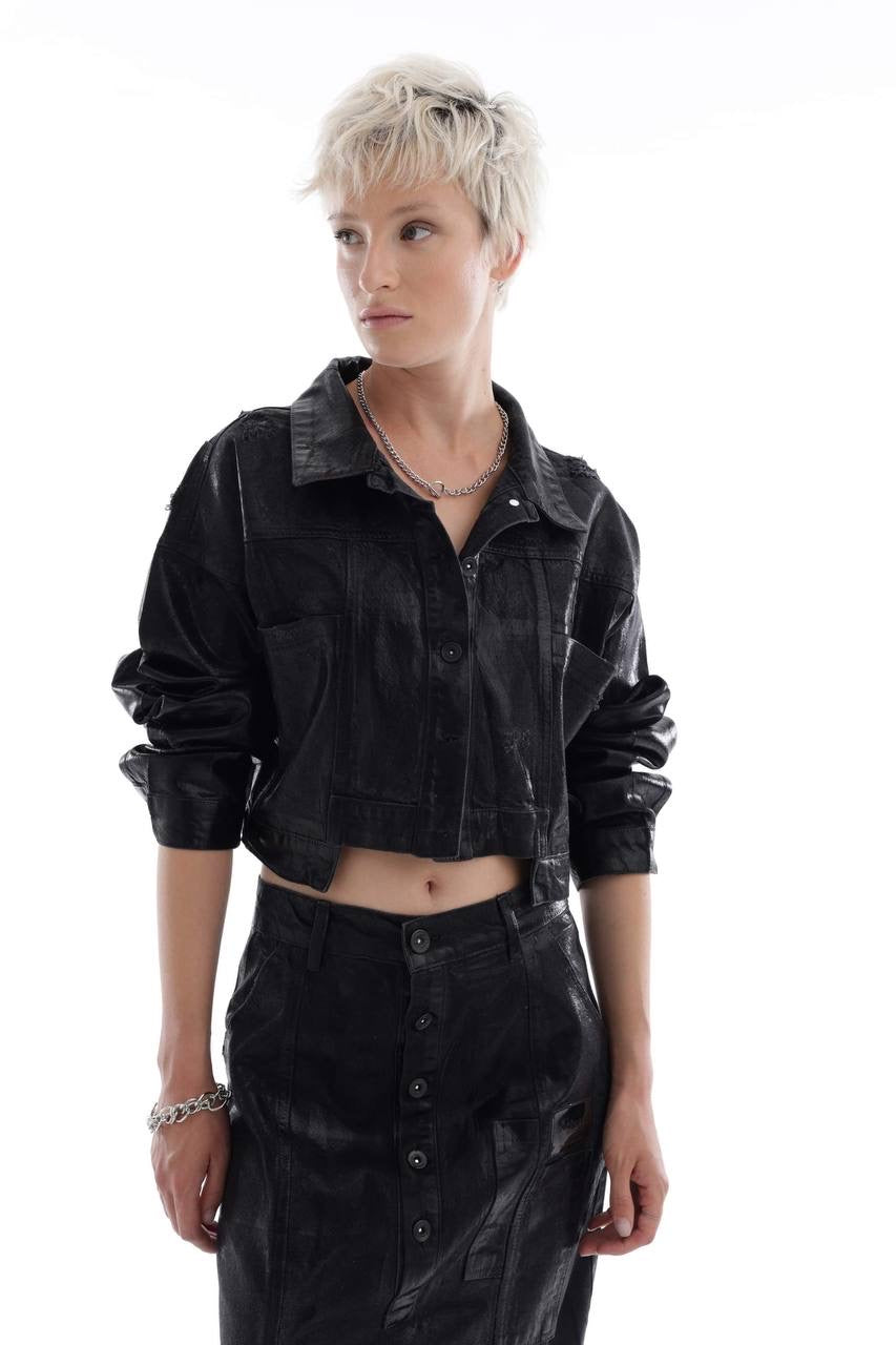 Metallic black denim jacket